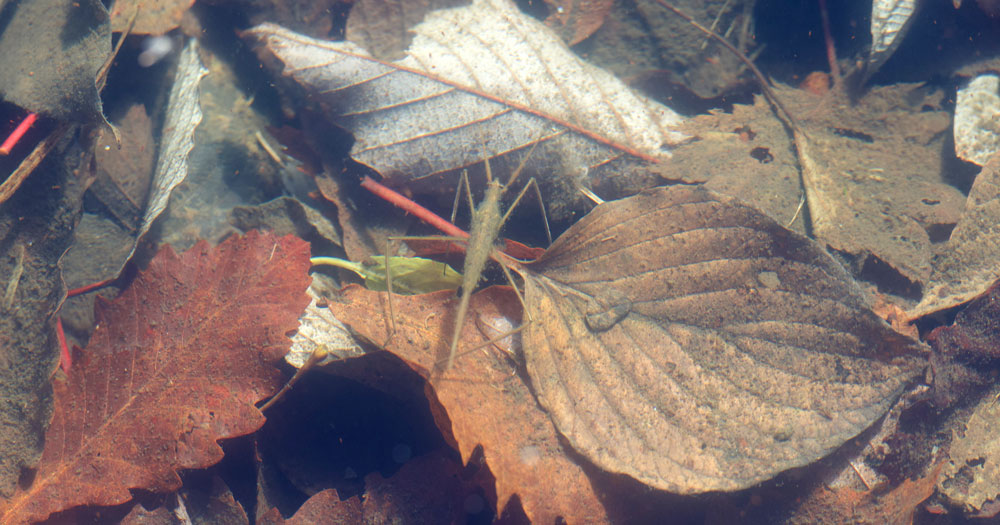 木道の下をのぞくと5cmほどに成長した霜柱.